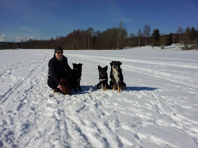 Men då kommer dagar som denna. Oj kärlek! Vaknade med min älskling vid min sida. Haft en bra dag på jobbet. Hämtade hundarna och hälsade på Amillos uppfödare på Reginas Zoohörna. Sedan vidare till Anders och hundarna. Oj vilken härlig promenad på isen vi haft. Fräknarna ökar i mitt ansikte och hundarna är belåtna.